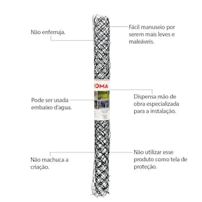 Diagonal maior da malha da malha 5,5cm Diagonal menor da malha da malha 5,0cm Peso/m 170g