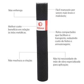 Tela Proteção Cercado Janela Jardim Apartamento 13mm 1m X 2m Cor: Preto As Telas para cercamento hexagonal Telas Touro são produzidas em PEAD e desenvolvidas para substituir as telas metálicas / galvanizadas e atender as características que estas não oferecem. A Família de produtos Telas Touro possui grande variedade de modelos, aberturas de malha, espessuras e alturas atendendo diversos segmentos.Cercamento de jardins, playground, campos e quadras poliesportivas; Cercamento de criações.Cercas Internas.Indústria.Suportar e armar Grama.Estuques.Assentamento de revestimentos cerâmicos.Advertência para escavações para detecção de tubulações.Fechamento de portões pára evitar a entrada ou saída de animais de pequeno porte.Viveiros, pinteiros e galinheiros.Ornamentação de jardins.Artesanato. Principais Vantagens: Não enferruja; Melhor custo benefício em relação às telas metálicas; Não machuca a criação; Fácil manuseio por serem mais leves e maleáveis; Facilidade na aplicação; Rolos compactados que facilitam o transporte, reduzindo custo de fretes e armazenagem; Não há necessidade de mão de obra especializada para aplicação; Reduz o risco de contaminação e ferimentos; Boa durabilidade e aparência; Não há necessidade de manutenção pintura ; Podem ser utilizadas em vários segmentos, onde as telas galvanizadas não atendem ex: industria ; Resistente a produtos químicos; Principais Diferenciais: Espessuras de fio maiores; Melhor custo-benefício. Dados técnicos Largura: 1 mMalha: 13 mmComprimento: 2 mCor: Preta As especificações técnicas estão sujeitas a alterações sem aviso e são de responsabilidade do fabricante.