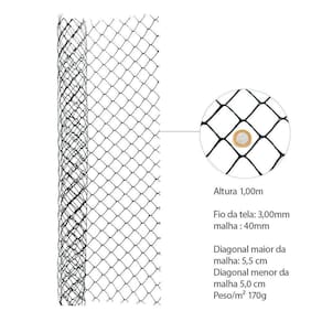 Diagonal maior da malha da malha 5,5cm Diagonal menor da malha da malha 5,0cm Peso/m 170g