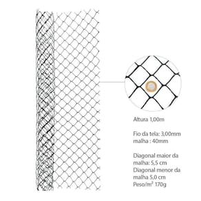 Diagonal maior da malha da malha 5,5cm Diagonal menor da malha da malha 5,0cm Peso/m 170g