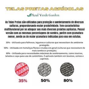 - tela de sombreamento preta 50% agrinet nas dimensões - 2 metros de largura por 5 metros de comprimento, com acabamento de fita reforçada e ilhós aplicado à cada 50cm na bainha + alças reforçadas nas 4 pontas.