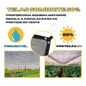 Características da tela de sombreamento: Tela com proteção u.V. Produto permeável e maleável. Fabricado com polietileno de alta densidade e matéria-prima 100% virgem, leve e possui alta resistência à tensão, compressão e tração. Bloqueia até 50% de raios uv. São leves e resistentes, fácil manuseio, transporte e instalação. Acabamentos nas laterais bainha e ilhós a cada 95 cm aproximadamente e alças nas extremidades.
