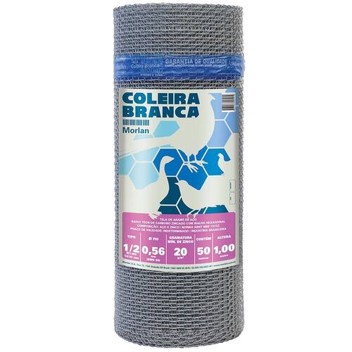 Indicada para cercar viveiro, a Tela Hexagonal Morlan Coleira Branca oferece qualidade e durabilidade. O rolo possui 1 metro de altura por 50 metros de comprimento, ideal para cercar espaços amplos.