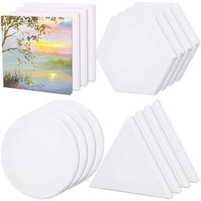 Tela esticada em branco: você receberá 16 peças de tela esticada em diferentes formatos, incluindo triângulos, quadrados, hexágonos e círculos, o tamanho é de cerca de 15 cm; cada forma tem 4 peças, a quantidade é suficiente, o estilo é suficiente e pode facilmente atender às suas necessidades de pintura. Encadernação de segurança para trás: cada tela em branco aberta é firmemente fixada na moldura de madeira com grampos, a tela é esticada e lisa, você pode pintar como quiser sem se preocupar que a tela caia. Materiais de alta qualidade: A estrutura da tela é feita de m d f e a tela esticada é feita de tecido de algodão branco. É de alta qualidade e durável, não é fácil de quebrar ou deformar. Você pode usar lápis ou tinta a óleo para pintar. Amplamente utilizado: Você pode colocar painéis de tela em salas de aula ou estúdios para fornecer serviços para estudantes, artistas ou pintores de hobby. Eles são adequados para criação individual e trabalho coletivo. Você pode pendurá-los na parede para decorar sua casa e usá-los como quiser. 100% Garantia de Satisfação: Se você tiver alguma dúvida ou insatisfação com o produto, sinta-se à vontade para entrar em contato conosco, forneceremos a melhor solução. A sua satisfação é a nossa principal preocupação.