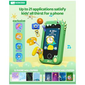 Brinquedo telefone infantil KOKODI oferece várias funções para crianças pequenas, incluindo fotos e vídeos com 12 megapixels e vídeo HD 1080p. Tela sensível ao toque de 2,8 polegadas (˜7,1 cm), trava automática em pessoas, animais e pássaros, e 23 adesivos divertidos para fotos. Vem com 13 jogos educativos pré-instalados em três níveis de dificuldade, além de milhares de músicas e centenas de histórias armazenadas em memória ampla. Capa de silicone protege contra quedas e facilita o manuseio. Ideal para crianças de 3 a 9 anos, perfeito para presentes de aniversário, Natal e outras ocasiões, promovendo diversão segura sem exposição a riscos digitais.