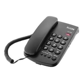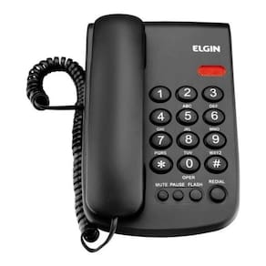Telefone com fio Elgin Star Office com controle de volume da campainha, rediscagem, tecla flash, função mute e opções de instalação em mesa ou parede.Identificador de chamadas