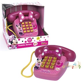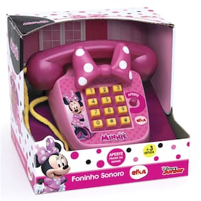 Telefone sonoro com frases da Minnie! Brinque como fone, aperte as teclas e botão com frases da sua personagem predileta da Disney.