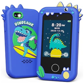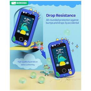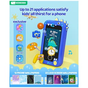 Brinquedo telefone infantil KOKODI com várias funções para crianças pequenas, incluindo fotos e vídeos com 12MP e vídeo HD 1080p. Tela sensível ao toque de 2,8 polegadas (7,1 cm), trava automática em pessoas, animais e pássaros, e 23 adesivos divertidos para fotos. Vem com 13 jogos educativos pré-instalados em três níveis de dificuldade, além de milhares de músicas e centenas de histórias armazenadas em memória ampla. Capa de silicone protege contra quedas e facilita o manuseio. Ideal para crianças de 3 a 9 anos, perfeito para presentes de aniversário, Natal e outras ocasiões, promovendo diversão segura sem exposição a riscos digitais.