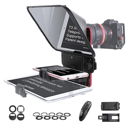Teleprompter Portátil 11' Desview T3 Para Smartphones, Tablets E Câmeras O Teleprompter T3 Desview 11 Portátil para Smartphones, Tablets e Câmeras é um dispositivo auxiliar indispensável. Ele pode ajudar os usuários a expressar sua linguagem suavemente e reduzir ainda mais a distância entre o apresentador e o público.Desenvolvido especialmente para videomakers, o Teleprompter Portátil Desview T3 é um equipamento leve e portátil, criado para transmissão de alta qualidade com Smartphones, Câmera DSLR ou Câmera Mirrorless. Com ele você irá ler de forma clara o texto em rolagem no seu Tablet ou Smartphone enquanto olha diretamente para a câmera.Além de nove anéis de suporte para lentes de 49mm a 82mm, o Teleprompter T3 Desview possui aplicativo APP para Android / iOS e Controle Remoto Bluetooth, sua operação é simples, o que torna o desempenho da produção de vídeo ainda mais rápida e fácil. É o Teleprompter Portátil ideal para vídeo, transmissões ao vivo e criação de conteúdo mesmo em ambiente interno e externo. A filmagem horizontal oferece suporte para entrevistas, cursos EAD, palestras ao vivo, eventos online e muito mais.Principais Características: Tamanho do espelho de 18.6x14.4cm Transmissão Prompting via Smartphone/Tablet, filmagem via Câmera. Transmissão Prompting via Smartphone/Tablet, filmagem via SmartPhone Suporte para lente grande angular, visão ampla sem vinhetas Com 9 anéis adaptadores de lente 49/52/55/58/62/67/72/77/82mm Suporta gravação em modos com tela horizontal e tela vertical Aplicativo para Android / iOS e Controle Remoto bluetoothObs: Não acompanha Câmera, Smartphone, Tablet ou demais equipamentos de referência mencionados, as imagens são ilustrativas, verifique os Itens Inclusos na sessão Dados Técnicos. Homologação Anatel: 072791912333 Marca: Desview