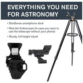 LIBERE O PODER DO SEU SMARTPHONE Deixe seu iPhone ou telefone Android levá lo em um passeio guiado pelo céu noturno não é necessária experiência em telescópio. Basta seguir as setas para localizar estrelas, planetas e muito mais TECNOLOGIA DE RECONHECIMENTO DO CÉU STARSENSE PATENTEADA Este telescópio exclusivo usa a tecnologia patenteada e premiada de reconhecimento do céu StarSense e seu smartphone para analisar os padrões das estrelas e calcular sua posição em tempo real. APLICATIVO STARSENSE EXPLORER O aplicativo gera uma lista dos melhores objetos para visualizar com base na sua hora e localização exatas. Veja planetas, nebulosas mais brilhantes, galáxias e aglomerados de estrelas da cidade MAIS objetos mais fracos e profundos do céu de locais mais escuros. FÁCIL DE CONFIGURAR E USAR A montagem manual de altazimute com haste de câmera lenta facilita seguir as setas na tela até o alvo desejado. Quando o alvo fica verde, está pronto para ser visto na ocular do telescópio. REFLETOR NEWTONIANO DE DE ALTA QUALIDADE O espelho primário de 4,5 apresenta revestimentos altamente reflexivos e capacidade de coleta de luz suficiente para visualizar crateras na Lua, Júpiter, Saturno, Marte e objetos do céu profundo como a Nebulosa de Orion Marca: Não Informado