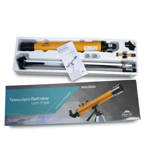 Descriçãopermite a observação terrestre detalhada, como paisagem, eventos esportivos, fauna, flora, dentre outros. Produto fácil de montar e desmontar, podendo ser facilmente deslocado para todos locais precisos. Uma ótima opção para estimular a curiosidade das crianças e adolescentes proporcionando maior conhecimento sobre o espaço em sua volta. O telescópio modelo FT50600II vem acompanhado de um tripé com altura ajustável. A abertura da sua lente é de 50mm tem uma melhor qualidade de imagem sendo mais clara, e com distância focal de 600mm possui localizador 5x24 , excelente diagonal híbrida 90 graus. Inclui as lentes 4mm, 12,5mm, 20mm, lente ereta 1,5x e barlow 3x. Telescópio ideal para iniciantes na observação terrestre e celeste. Informações Técnicas: Produto montagem e transporte; Tripé com altura ajustável; Objetiva: 60mm Distancia Focal: 600mm f/12 Localizador 5x24 Diagonal híbrida 90 Dimensões da embalagem: 85 x 15 x 23 cm Peso: 3,4 kg; Abertura: 50mm 2 ; Distância focal: 600mm, f/12; Finderscope: 3x; Hybrid diagonal: 90