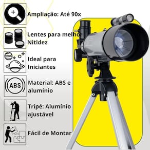 Para observações noturnas (lua, planetas) ou diurnas (paisagens, ambientes externos). Ideal para uso doméstico, campings e escolas.