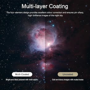 A lente de Barlow 1,25 " 4-element 3 x o poder de qualquer 1,25 " telescópio ocular. É um acessório ideal para alta potência elevada e observação planetária, bem como na Lua e planetária de imagens quando utilizado com um sistema solar a câmara ou câmara. Use este prático magnification-boosting Barlow para corpo a corpo na visão de Mars, de Saturno, e gigantesco planeta, ou para estudo sempre of the Moon em detalhe requintado. O impulso de energia fornecida pelo extra este é especialmente útil quando utilizado com curta distância focal da lente Barlow Telescopes que seria o contrário não ser capaz de alcançar a ampliação desejada com muito curta distância focal de. Os 3 x Barlow possui um design melhorado 4-element lente que preserva a nitidez e contraste do seu telescópio e telescópio de. Os elementos de lente multi-revestido com camada de São totalmente revestimentos, e edge-blackened para proporcionar o máximo de luz de rendimento e melhor contraste da imagem. - Potência de ampliação 3X: lente 3 x de 3 cm quando conectada Astromania qualquer ocular de telescópio de 3 cm; fornecerá uma ampliação três vezes maior que a da ocular; proporcionando um efeito mais claro para astrofotografia - Revestimento múltiplo: lentes de 4 elementos com design óptico multi-revestido tornam a imagem mais nítida e nítida, o que renderá imagens requintadas sem introduzir abberação cromática adicional; enquanto pode manter a reprodução de cores reais mesmo em condições de pouca luz - Compatibilidade universal: lente 3x barlow de 3 elementos Astromania de 3 cm com design de cilindro de 3 cm projetado com precisão; é compatível com a maioria dos telescópios e oculares; o cilindro rosqueado aceita filtros para fotografia de planetas e nebulosas - Estrutura de liga de alumínio: feito de alumínio premium com acabamento anodizado preto; este componente é usinado com precisão usando tecnologia CNC e pode ser utilizado por um longo tempo na maioria dos ambientes - Embalagem protetora premium: este barlow 3x está equipado com uma tampa antipoeira e uma bela caixa; a tampa de poeira meticulosamente projetada pode proteger a lente das partículas de poeira mais íntimas; garantindo um efeito óptico claro e sem falhas para cada observação