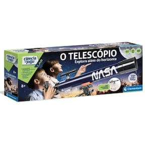 Especificações: Conteúdo da embalagem: 1 autêntico telescópio da NASA com lente objetiva de 50 mm e oculares intercambiáveis para diversos efeitos de ampliação até 300x. Com tripé extensível até aos 130 cm. Dimensões do Produto: 63x10x28 cm comprimento x largura x altura Peso do produto: 1,311 kg Idade Sugerida: +8 anos Certificação Inmetro: 007 441/2022 Garantia: 3 meses defeito fabricação