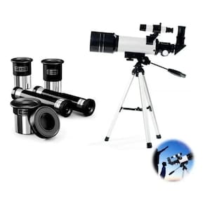 Modelo F30070M Sistema óptico Monocular (refrator) Ampliação máxima 150h Diâmetro da lente 70 mm Distância focal 300 mm Potência da luz F/4,28 Foco 0,98 Resolução 1,97 Formato de edição Azimut Comprimento mínimo do telescópio 300 mm Comprimento com distância máxima da lente à ocular 345 mm Altura do tripé 380 mm Teamtelescope Tripod Telescope Tripé Conjunto TrioptoA (x50, x15, x3, X1.5) Especificações: Cor: Diâmetro do telescópio Black + Silver: 90/3,54 “Comprimento do tubo: 350 mm./13,78" Comprimento do tripé: 375 mm./14,76 Altura do tripé: 390 mm./15,35 “Comprimento focal: 300 mm. Lente ocular F/4: H6 mm, mm. Ampliação: 150 x, 75 x, 22,5 x, 45 x, 50 x, 15 xCaracterísticas: 1. Tripé de alumínio para ajuste de altura. Construção em alumínio leve e durável, boa opção para iniciantes, componentes ópticos com revestimentos de vidro de alta transmissão para maior brilho e clareza. Rápido e fácil de montar. Seus suportes robustos são perfeitos para rastrear objetos no céu noturno, e o suporte equatorial dobrável de azimute alternativo é ideal para uso terrestre, bem como para visualização astronômica (terra) .4. Presente perfeito para crianças como uma ótima maneira de abrir o dia às maravilhas do universo. O pacote inclui: 1 x ocular telescópica 1 x H6 mm1 x mm. 1x1,5 x construções 1x3 x lente 1 x espelho diagonal e lente de viseira lunar, 1 x rolamento 1 x tripé 1 x tampa de lente 1 x controle de alvo e alça de bloqueio 1 x manual do usuário (INGLES)