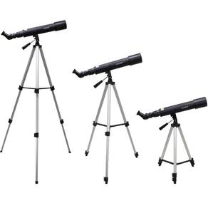 Tipo de telescópio: Refrator terrestre com zoom Diâmetro objetiva: 60mm Aumento Máximo: 60x Construção: Azimutal Abertura: 1:8 Distância focal: 500mm Montagem: Câmera tripé Tripé: Alumínio 3 estágios Peso: 4.1kg Diâmetro das oculares: 0.965 (25mm) Altura do telescópio: 125cm Comprimento do tubo: 55cm