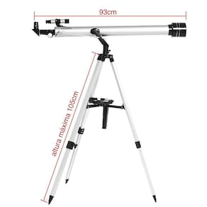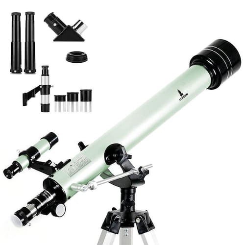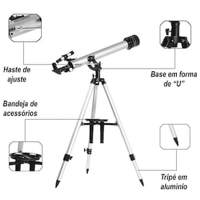 Este telescópio astronômico é uma ótima opção para quem está iniciando no campo da observação. Seu poder máximo de ampliação é de até 675x. Uma das melhores no mercado para iniciantes, ele permite a observação terrestre, como paisagens, eventos esportivos, fauna, flora e mais. A observação celeste é de ótima qualidade, permite observar a Lua em detalhes, além de planetas próximos à Terra, estrelas, galáxias próximas e muito mais. E este modelo ainda inclui um filtro planetário/lunar verde, que otimiza a observação planetária.Fácil de montar e desmontar, pode ser facilmente transportado a lugares que favoreçam a visualização do objeto desejado.É uma ótima opção para estimular a curiosidade de crianças e adolescentes, além de proporcionar maior conhecimento sobre o espaço a nossa volta.Aplicações recomendadas para este filtro planetário/lunar:Lua - Útil para melhorar o contraste das características lunaresVênus - Útil para estudo padrão das nuvens de Vênus e para reduzir o brilho do céu terrestre durante a luz do dia, período excelente para observar este planeta, visto que o alto contraste de Vênus contra o céu escuro da noite muitas vezes faz da observação desconfortável e insatisfatória, enquanto que durante a luz do dia a gama de contraste não é tão grande, a irradiação dentro do seu olho é reduzida e as características sutis de Vênus são às vezes mais visíveisMarte - Excelente para aumentar o contraste das calotas polares marcianas e geadas superficiaisJúpiter - Aumenta a visibilidade da chamada Grande Mancha Vermelha. Útil para observar o baixo contraste nos tons de vermelho e azul visíveis na atmosfera de Júpiter e também melhora características brancas em sua atmosferaSaturno - Melhora características brancas na atmosfera planetáriaOBSERVAÇÃO: O alcance de um binóculo, telescópio ou luneta é infinito. Veja que a olho nu podemos ver estrelas e a lua, que estão a milhões de anos luz ou seja, o que um equipamento ótico faz, é aproximar um certo número de vezes o objeto visado, independente se ele esteja a 1 km, 5 km ou 200.000km.- Marca: Lorben- Material: Alumínio- Cor: Prata esverdeado- Modelo: 90060- Telescópio refrator- Montagem: Azimutal- Tubo Principal em alumínio com pintura epóxi- Tripé de Alumínio com altura regulável (altura mínima 62cm / altura máxima 105cm)- Fácil montagem e transporte- Objetiva: 60mm- Distância Focal: 900mm- Localizador 5x24 (mira)- Diagonal híbrida 90°- Lentes revestidasA lente com abertura de 60mm tem uma melhor qualidade de imagem por ser mais clara, e com distância focal de 900mm, possui localizador 5x24 (mira), excelente diagonal híbrida de 90°. Inclui as lentes SR4mm, H12,5mm, H20mm, lente ereta 1,5x e barlow 3x. A fórmula para calcular a ampliação desse telescópio: basta dividir a distância focal 900mm pela ocular (lentes). Sendo desta forma, a potência de ampliação deste telescópio é: Com a Lente SR4mm 225x Com a Lente H12,5mm 72x Com a Lente H20mm 45x Usando a lente ereta 1,5x, a ampliação é:Com a Lente SR4mm + ereta 1,5x = 338x Com a Lente H12,5mm + ereta 1,5x = 108x Com a Lente H20mm + ereta 1,5x = 68x Usando a lente barlow 3x, a ampliação é: Com a Lente SR4mm + barlow 3x = 675xCom a Lente H12,5mm + barlow 3x = 216x Com a Lente H20mm + barlow 3x = 135xInclui:1 Ocular1 Bandeja de acessórios 1 Prisma diagonal1 Lente Barlow 3x 1 Lente ereta 1.5x1 Lente SR4mm1 Lente H12,5mm1 Lente H20mm1 Filtro planetário/lunar verde1 Pára-sol de lente1 Suporte de buscador1 Tripé regulável1 Manual de instruçõesTamanho do produto: 89x6x6cmPeso do produto: 610gTamanho da embalagem: 87x24x18 cmPeso da embalagem: 3,335 kgCódigo do produto: 320Imagens ilustrativas. As tonalidades podem variar.