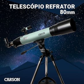 O Telescópio Refrator Carson 80mm é a ferramenta perfeita para quem deseja mergulhar no fascinante universo da astronomia, seja você um iniciante curioso ou um observador experiente. Com uma lente de 80mm de abertura, este telescópio oferece uma excelente captação de luz, permitindo visualizações nítidas e brilhantes de objetos celestes, mesmo aqueles mais distantes, como galáxias e nebulosas.