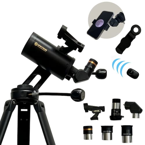 -?Alta ampliação?Telescópio profissional Ideal para visualizar planetas e objetos do espaço profundo, esses telescópios Maksutov oferecem uma ampla gama de opções de ampliação. O telescópio Maksutov equipado com três oculares substituíveis e uma lente Barlow 2x, eles facilitam a observação de objetos em diferentes distâncias. Uma potência máxima de ampliação de 375X o torna um excelente telescópio para iniciantes e crianças interessadas em astronomia.