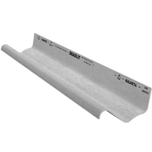 A Telha Cimentícia Kalheta da Brasilit com espessura de 8 mm e comprimento de 6 metros é fabricada em fibrocimento — combinação de cimento reforçado com fio sintético (tecnologia CRFS) — e possui cor cinza padrão. Sua largura nominal é de aproximadamente 40 cm conforme ficha técnica.