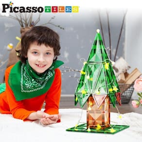 - SONHE GRANDE E CONSTRUA GRANDE: Abrace a criatividade e construa maravilhas com o conjunto de brinquedos de construção de blocos de construção de ladrilhos magnéticos com tema natalino da PicassoTiles. Com 105 peças magnéticas e uma luz LED de corda operada por bateria, adornada com formas de círculo de estrelas e bulbos e 3 modos de iluminação. Com 40 quadrados, 9 triângulos, 20 triângulos isósceles, 34 triângulos agudos e 2 ladrilhos do pentágono, as crianças podem construir e criar para festividades de fim de ano e diversão durante todo o ano. Adequado para meninos e meninas de 3 anos ou mais.