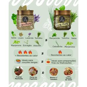 O Tempero Ervas de Provença da BR Spices é uma autêntica explosão de sabores que traz consigo a tradição culinária francesa. Com uma cuidadosa seleção de ervas de Provença, 100% naturais, este tempero é especialmente formulado para realçar o sabor de carnes brancas leves, além de agregar um toque delicioso a verduras e legumes.