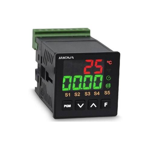 Controle de tempo com 7 funções de temporização.Temporizador simples, temporizador duplo, temporizador cíclico, duas velocidades amassadeira , lavadoura, triplo sequencial e percentual.Alimentação: 24 vac/vcc.3 entradas digitais para controle da temporização.1 saída 12 vcc/40ma para sonorizador externo. 1 saída 12 vcc/40ma para alimentação de sensor.3 saídas a relé na 5a - 240 vca .Faixa de temperatura de operação e armazenamento: entre -10c e 60c.Caixa 48x48x69mm. Conexão com conector pluggable parafusos . Substitui o inv-1801, inv-1815, inv-40401 e inv-40402.