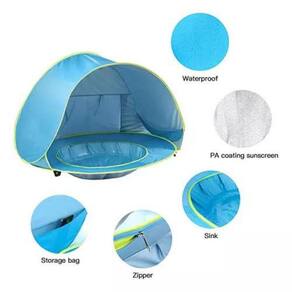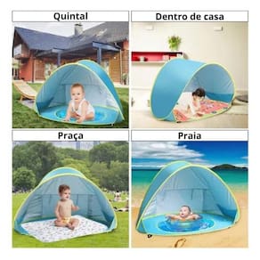 Tenda de praia infantil portátil Azul com mini banheira no centro - toda a diversão dentro e fora de casa, fortaleça a imaginação do seu filho. Com a barraca portátil e com um acabamento leve, é mais fácil de levar para passeios ao ar livre, e ate organizar em sua casa. Capacidade: 1 a 2 crinaçasTamanho: 117 cm 79 cm 70 cmEmbalagem: bolsa de poliéster