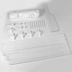 Inclui espeto metálicos para fixação em solo firme e tirantes para amarração