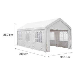 Gazebo para eventos com paredes 250x300x600 cm. Cor bege. Estrutura de aco e cobertura de poliester e polietileno. Peso bruto e liquido de 47 kg. Dimensoes: altura 275 cm, largura 300 cm, comprimento 600 cm. Uso externo. Nao indicado para uso na chuva. Produto importado. Codigo EAN: 7807999296093.