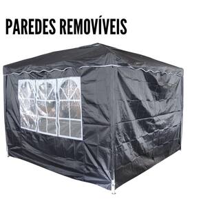 Tenda Gazebo Articulada 3x3 m com 2 Paredes Alumínio Barraca Praia Camping Sanfonada Bolsa - Cor: Preto