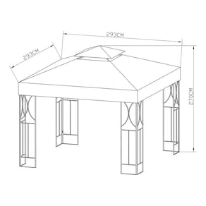 - Dimensoes: Comprimento 300 cm, Largura 300 cm, Altura 270 cm