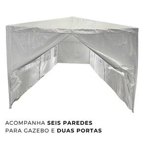 A Tenda Gazebo Importway é ideal para você aproveitar um dia de sol na piscina, praia, fazer eventos ao ar livre, chácaras ou quando for acampar. Além de proteger você e sua família do sol quente, também auxilia na prevenção de doenças de pele. Se adapta á sua necessidade, com cobertura de 3x9 metros em poliester lavável com base de 3x9 metros. A Tenda é simples e prática de usar em qualquer ocasião, com estrutura em tubos de ferro com revestimento em epóxi super resistente e seguro. Ainda inclui espetos metálicos para fixação em solo firme e tirantes para amarração.