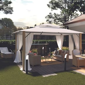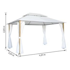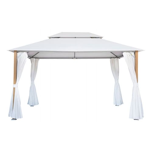 O gazebo Agora Naterial protege seus convidados do sol e chuva leve. Com uma grande área de cobertura, você pode facilmente colocar uma mesa e suas cadeiras sob ela. Seu toldo retangular grosso é repelente de água e bloqueia 100% dos raios UV. O gazebo está equipado com cortinas para que você fique totalmente protegido de insetos. Sua estrutura de alumínio não enferruja e é resistente às intempéries.