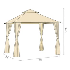 Sua estrutura em aco confere resistencia e firmeza, enquanto a cobertura em poliester de alta qualidade garante sombra e abrigo contra vento leve. As cortinas laterais inclusas permitem criar um ambiente mais reservado e elegante, alem de oferecerem versatilidade na decoracao.