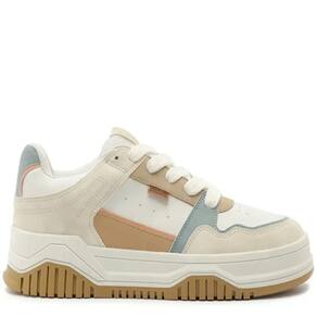 Um convite para explorar cada caminho que o verão pode te levar.. Das ruas ensolaradas aos destinos improváveis, a coleção celebra a liberdade de seguir o seu ritmo, com leveza, cor e conforto.. Verão?26 é sobre estar pronta para viver agora, do seu jeito.. Tênis Sofi, com detalhe em recortes, em branco e azul. O modelo apresenta nova construção no solado - mais alto e estruturado, traz sola flatform emborrachada em branco com detalhe tratorado marrom.. Com um design robusto com aplicação de mix de peças em napa e camurça coloridas e recortadas por todo o cabedal.. Possui acabamentos em costura pesponto nos contornos e perfuros na lateral e na biqueira, proporcionando maior respirabilidade para o tênis.. De amarrar, com atacadores brancos. Aplicação de tag marrom lateral Anacapri..