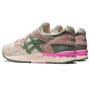 O tênis GEL-LYTE™ V da Coleção SPRING IN JAPAN™ inspira-se nas flores que florescem durante a primavera japonesa. Seu cabedal é feito em nobuck de pele de porco, enquanto a lingueta apresenta um bordado da flor Kamon. Tons neutros são contrastados com vários toques de cor que inspiram glicínias, flores de cerejeira, hortênsias, nemophilas e flores de mostarda. O modelo mantém o design ondulado de quando chegou ao mercado de corrida em 1993. Ele também conta com a tecnologia GEL™ na parte traseira do pé para conforto no dia a dia.