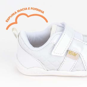 O modelinho possui um ângulo de pronação com leve inclinação lateral no solado que acompanha o movimento natural dos pezinhos, pois o bebê pisa de fora para dentro. Com áreas de flexão que garante liberdade para os dedinhos se movimentarem. É a ajudinha extra que eles precisam para treinar os primeiros passinhos.