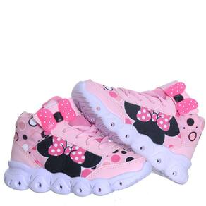 Tenis Bota Infantil Menina Laço Com Luzinha Led + Pulseira - 32 - Rosa