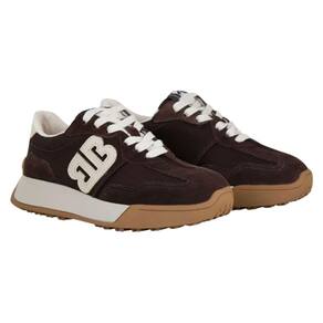 Tênis confeccionado em couro camurça na cor café. Apresenta solado robusto em material de cor natural, proporcionando estabilidade e conforto ao caminhar. O modelo possui fechamento por cadarço, garantindo melhor ajuste aos pés, além de detalhe no calcanhar em couro na cor marfim. Conta ainda com aplicação da letra "B" na lateral, conferindo identidade ao design. Altura do solado: 3 cm proporcionando uma leve elevção, sem abrir mão da estabilidade e conforto.