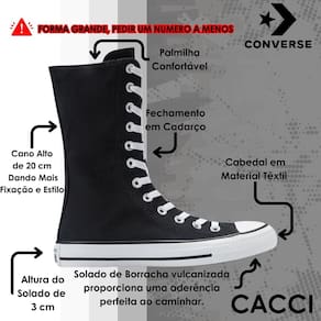 Os anos 2000 estão de volta, e o icônico Tênis Converse Chuck Taylor All Star ressurge em sua versão cano alto para um visual autêntico e cheio de atitude. Inspirado na tendência Y2K, esse clássico atemporal é confeccionado em tecido canvas de algodão tipo lona, garantindo resistência e estilo. Com cano de aproximadamente 17,5 cm, ele oferece um ajuste confortável, enquanto os ilhoses laterais garantem a transpiração ideal para os pés. O logo Chuck Taylor aparece na parte interna dos canos, reforçando sua autenticidade, e a tradicional tag traseira completa o design. Já a sola de borracha vulcanizada proporciona aderência e segurança a cada passo.