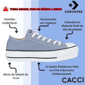 Eleve o seu estilo com o novo Chuck Taylor All Star Lift! Um clássico reinventado com o solado plataforma que vai te levar para o próximo nível. Garanta já o seu e conquiste a altura e atitude que seu look merece!
