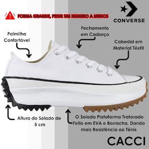 O Converse Run Star Hike é construído sobre uma plataforma robusta com solado bicolor e é confeccionado em tecido canvas de algodão tipo lona, com costuras duplas. O modelo possui dois ilhoses laterais para a transpiração adequada dos pés. Possui palmilhas SmartFOAM para melhor amortecimento. O solado plataforma tratorado, com aproximadamente 5 cm de altura (podendo variar conforme o tamanho do tênis), é feito em EVA e borracha, dando mais resistência ao tênis. O design é finalizado com o icônico Patch aplicado no calcanhar, com a assinatura do Chuck Taylor.