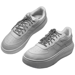 A sola do tênis é projetada para ser flexível, proporcionando facilidade de movimento e naturalidade ao caminhar. A sola metalizada não apenas adiciona um elemento estiloso, mas também contribui para a durabilidade do tênis.
