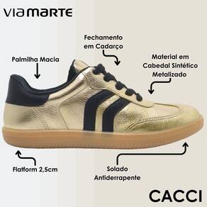 Destaca-se pelo seu design sofisticado e moderno, com cabedal confeccionado em material sintético metalizado de alta qualidade. Este modelo combina elegância e conforto, tornando-se uma escolha perfeita para diversas ocasiões.