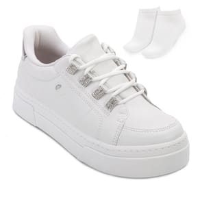 Nome: Tênis Casual Dakota e Meia DT24-G9304. Gênero: Feminino. Indicado para: Dia a dia. Estilo da Peça: Casual. Material Externo: Alternativo. Material Interno: Têxtil almofadado. Detalhe: Brilhos aplicados nos passadores de cadarço. Fechamento: Cadarço. Palmilha: EVA forrada, macia e removível. Altura do Solado: Flatform, baixo 3,5 cm. Solado: Borracha antiderrapante. Peso do Produto: 964 g (o peso varia de acordo com a numeração). Garantia do Fabricante: Contra defeito de fabricação. Origem: Nacional. Código Produto: 02024786. Marca: Dakota. Acompanha um par de meias tamanho 33 ao 38. Composição 83 % algodão - 12 % Poliéster - 05 % Elastano.
