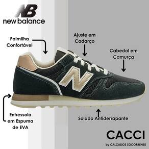 Detalhes de cores contrastantes nos cadarços, forro e borda do logotipo quebram o visual, e um logotipo N simplificado completa com um pouco do estilo clássico da marca. O 373 New Balance masculino é simplesmente refinado com uma parte superior semelhante a couro sintético , cores neutras e detalhes inspirados na herança.