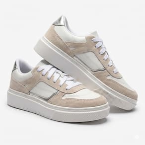 O tênis QR Shoes branco detalhe prata é a escolha perfeita para quem busca estilo, conforto e um visual único, confeccionado em Couro com costuradas detalhadas e recortes em couro camurça, detalhes prata, possuí um solado flatform proporcionando estabilidade e conforto no dia a dia. O design moderno é cuidadosamente elaborado, com costuras detalhadas que garantem um charme diferenciado. Além disso, o interior acolchoado.