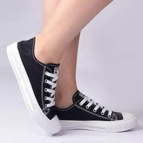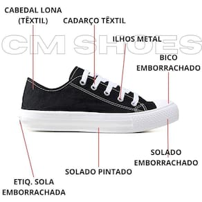 - Cabedal feito com material lona - Altura média do cano 12,5cm. - Solado feito com emborrachado pvc - Palmilha feita de eva de 3mm forrado - Lado interno com dois ilhos, para melhor respiração dos pés