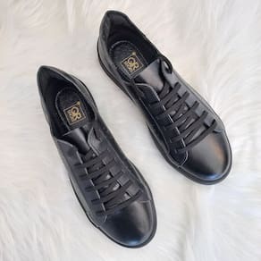 Tênis Casual Feminino em Couro Preto Sola Preta Flatform - Preto - 39
